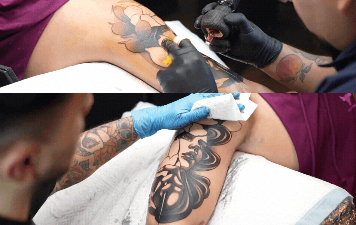 → Demostraciones visuales claras de las principales técnicas del tatuaje para que entiendas cómo hacerlas correctamente y tus tatuajes sanen bien.